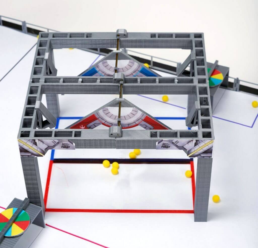 AutomationDirect’s animation team converted the animation models into 3D printable models for you to play with. This is the “playing field” for the FIRST Robotics Competition game for 2021. For more info about FIRST and the 2021 game: “INFINITE RECHARGE” – please visit the FIRST website.