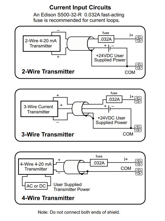 Figure 1: This diagram shows the most common 2-wire, 3-wire, and 4-wire analog 4-20mA control loop wiring configurations.