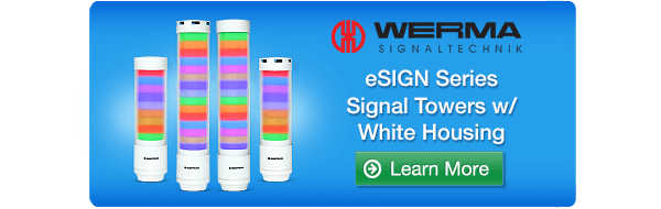 The new white WERMA eSIGN signal towers are UL listed, CE and UKCA marked, and RoHS compliant. They offer a 1-year warranty and start at $407.00.