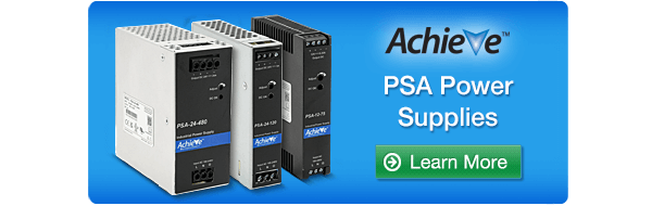 March 4, 2024 – AutomationDirect has added AchieVe PSA series value power supplies which offer prices well below the competition and are ideal for price-sensitive users who require basic yet reliable DC power for general industrial applications. Their overcurrent protection is designed to operate in constant current mode, making the PSA series suitable for inductive and capacitive loads.