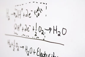 A fuel cell uses a chemical reaction to separate electrons and protons from the fuel and then force the electrons to travel through a circuit, thus creating electrical power. The typical construction uses a proton exchange membrane (PEM) to separate an anode and cathode. Fuel on the anode side reacts with a catalyst to split into protons and electrons. The protons pass through the PEM toward the cathode, but the electrons must flow out of the cell through the load to reach the cathode. At the cathode, the protons and electrons react with the oxidant to form waste products.