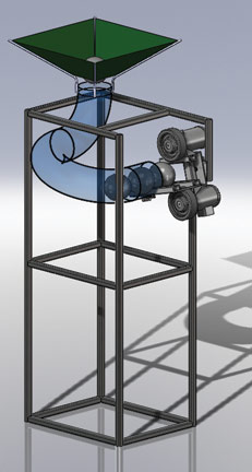 He led a team including three other students – Kelly Gray, Ryan Howell, and Trenton Phillips – to design and build a full scale working prototype of the “Ace Within Reach” volleyball setting and serving machine. The team goals were to improve on the existing “state of the art” volleyball serving machines. Several manufacturers offer similar machines today, but Larry and his teammates saw room for improvement in several areas. All the existing machines require the operator to feed the balls manually, one at a time, into the machine, forcing the operator (usually the coach) to be at the opposite end of the court from the player being coached. Larry and his team wanted to build a machine with a hopper to store and feed the balls into the launcher automatically, and to have a remote control interface so that the coach can stay near the player for maximum instructional advantage. They also envisioned a set of lights on the machine to simulate a ‘virtual toss’, giving the human players an intuitive warning that the launch of a (potentially 80 mph) volleyball was imminent. Other criteria included the ability to fit through a standard door, to roll on casters, and to hold up to 20 balls in the hopper awaiting launch.