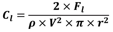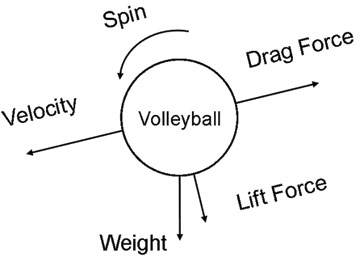 The team conducted a study of forces that apply to a volleyball in flight using Computational Fluid Dynamics (CFD). The purpose of this study was to predict the path the ball would follow as it flew through the air. CFD calculations were performed using the SolidWorks 2009 CAD software with Flow Simulation package. The coefficient of drag (Cd) and the coefficient of lift (Cl) are the two dimensionless parameters that need to be determined to find the trajectory of the ball in flight. The following formulas show how the coefficients are determined: