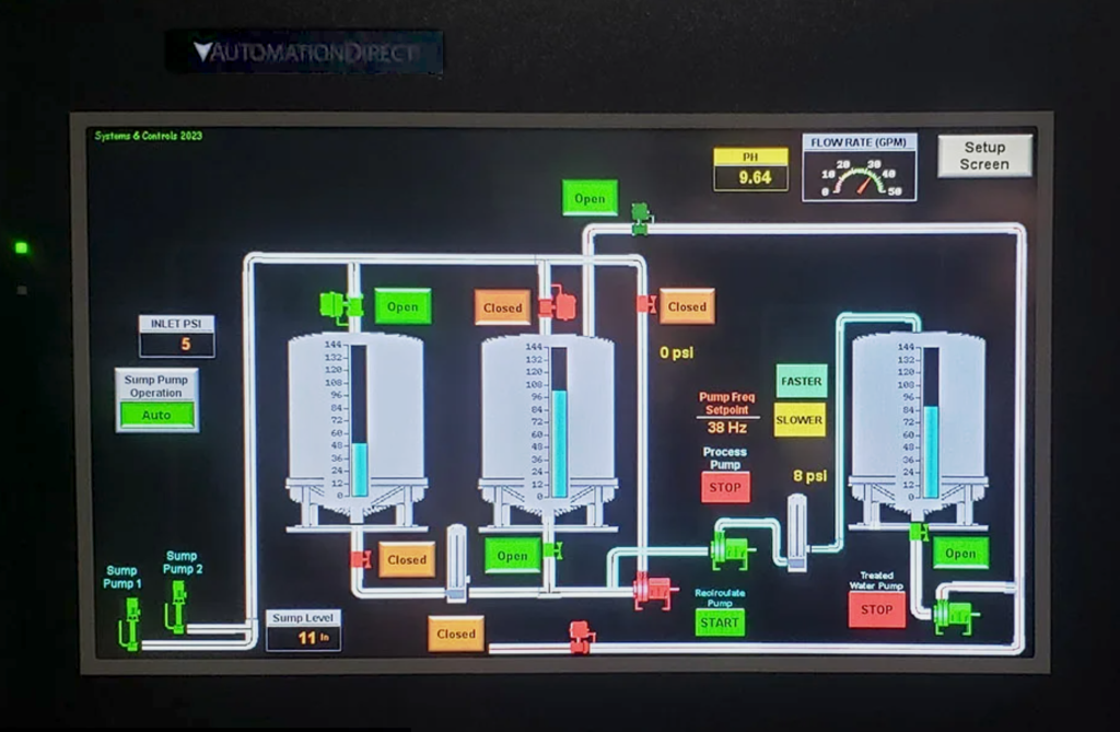 One of the most effective ways to automate industrial systems like this is to use COTS digital devices, such as human-machine interfaces (HMIs) and programmable logic controllers (PLCs), to monitor and operate field-located sensors, along with other equipment, such as valves and motors. S&C refined the control logic and best visualization practices for automating systems using proven HMI and PLC devices (Figure 1).
