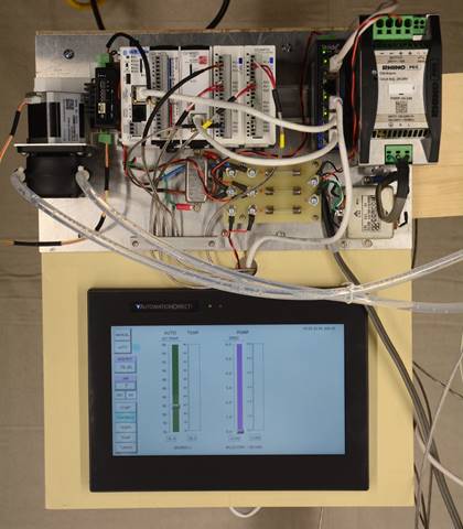 These trials suggested a need for a PLC and HMI capable of measuring and visualizing multiple temperature points, and using these values to modulate pump speed with a stepper motor and PID control (Figure 4). Cloud connectivity via Node-RED allows data logging and monitoring from anywhere. The PLC/HMI/stepper solution provides exceptional control versatility and access to process data: