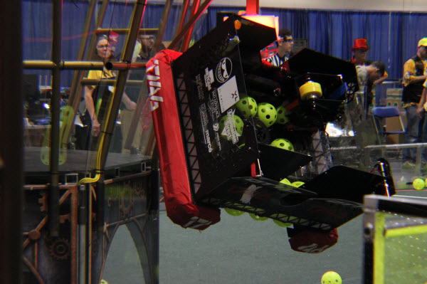 In high school students continue with the VEX platform and/or compete in the FIRST Robotics Competition – or “FRC.” The FRC Robots employ all the same rules as the VEX robots, except it is BIGGER – much bigger. A vex robot might be 12 to 18 inches and maybe 10-20 pounds; an FRC robot is 150 lbs. and typically several feet large.