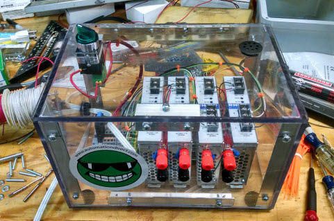 The PLC programming test stations were built by Russ Elster, a Scoutmaster with Troop 2752 in the Mahikan District. Russ used the same PLC test station design that was used for the launch of the Programming Merit Badge at the 2013 National Jamboree at the new Summit Scout Reservation in West Virginia. That worked out well because they could take advantage of the same supporting videos and sample programs used at the Jamboree.