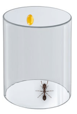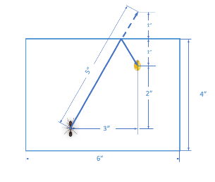 It may help to “unroll” the cylinder as a mental exercise. And note that the “crossing over” of the upper edge of the cylinder can be “flipped” so that the entire path is represented by a straight line. The distance can then be calculated with a simple Pythagorean triangle. A right triangle with sides of 3” and 4” has a hypotenuse 5” in length. The ant would need to walk 5” to reach the honey.