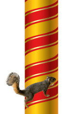 Similar to the previous puzzle – “unwrapping” the cylinder may help simplify the calculation. To make one revolution, the squirrel is climbing along the hypotenuse of a right triangle with sides of three feet and four feet in this case – for a total of 5 feet of travel per rev. To climb a pole sixteen feet tall, the squirrel must make four revolutions, and travel a total of twenty feet.
