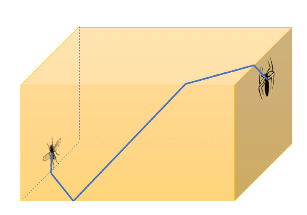 However, if the Spider is to crawl for the entire trip, the shortest path is shown here: