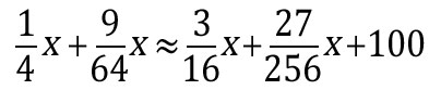 Solving this problem out exactly using algebra quickly proves to be very complicated. But if we use some approximations, we can simplify things greatly. If we ignore the sample widget that is packed each day, we can state that approximately ¼ of the widgets were packaged on Monday, 3/16ths were packaged on Tuesday, 9/64ths on Wednesday and 27/256ths on Thursday.