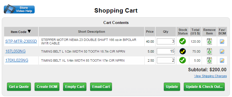 An engineer purchased 20 items at AutomationDirect.com and spent exactly $200. She bought at least one each of the following items (and nothing else): a SureStep stepper motor (STP-MTR-23055D) at $40, a SureMotion L-pitch timing belt (187L050NG) at $5, and a SureMotion XL-pitch timing belt (170XL025NG) at $2.50.