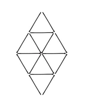 Can you remove four cable ties from the following arrangement and leave four equal size triangles with no extra “offshoots” or loose ends?