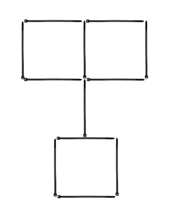 Starting with the arrangement shown above can you move only six of those cable ties and produce a pattern with five (unique) squares? No doubling-up the cable ties or loose ends, please.