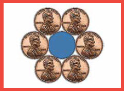 Place six pennies on a flat surface. Can you arrange the pennies in the exact positions shown, such that – IF you placed a seventh penny in the middle – it would touch all of the original six. You may not lift any of the pennies from the surface or use any other items, pennies, or measuring devices to assist, nor is it necessary to depend on your eye for judgment.