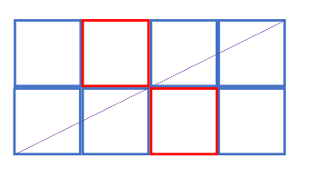 In this simple case we can see that the line crosses four of the tiles on a 2 x 4 grid.