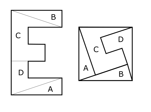 Extra Credit – if you are allowed to flip the cut pieces, can you do it with just four pieces?