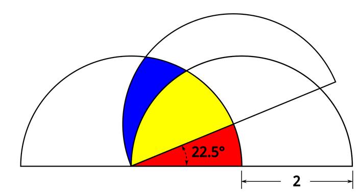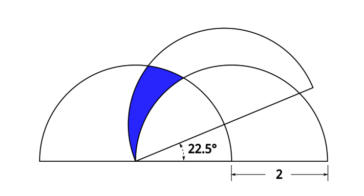It’s 22.5/360ths or 1/16th of the area of a 2” radius circle. Or (π22)/16 = π/4 (or approximately 0.79)