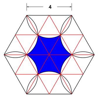 And thus, the total blue shaded area is 12√3 – 4π (or approximately 8.22)