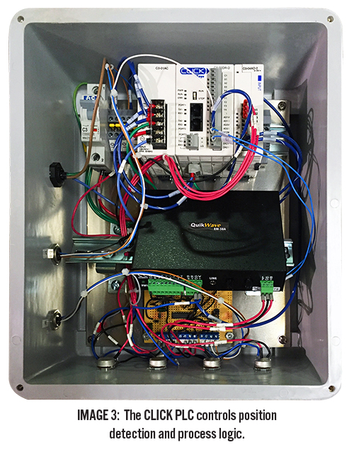 The biggest hurdle encountered was how to control the audio volume without excessive development and testing while also keeping costs low. As an experienced automation systems integrator, I did not have a volume control solution in my bag of tricks, and it quickly became apparent that some type of hybrid solution was needed. The position detection and process logic would be handled with an AutomationDirect CLICK® PLC, the audio playback would use a commercially available digital audio repeater, and the volume adjustment solution would need to be built using electronic components.