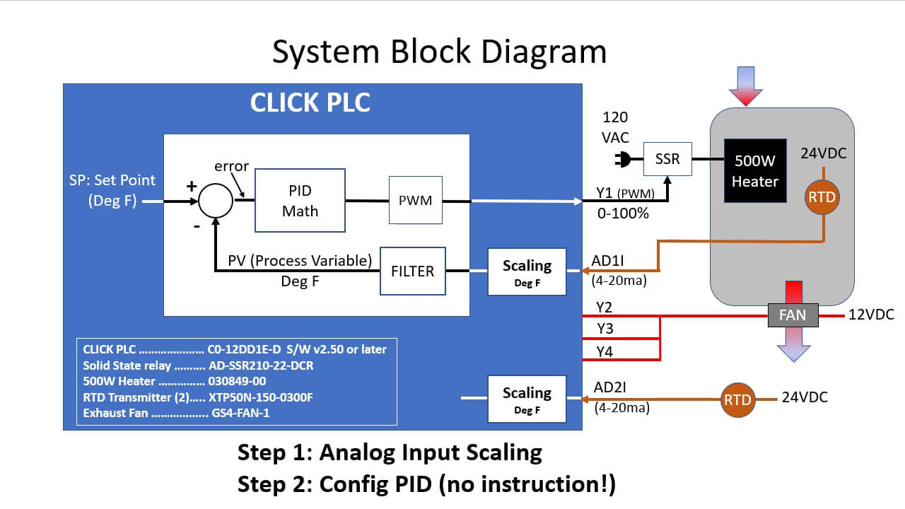 The CLICK PLC doesn’t have a Ramp/Soak function, so we use a simple brute force example in this video to show that PID can be driven by anything.