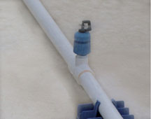 The system installed at GTC consists of a network of hydraulic piping mounted on the roof’s exterior. The network is essentially a supply line, which branches into a number of fields activated by low voltage solenoid valves. Each field contains sprayheads specifically designed for roof mist cooling. The fields are turned on and off based on calculations by a program executed in a DirectLOGIC DL205 PLC system with a D2-240 CPU, using information provided by three analog temperature sensors located on the roof. Each Sprinkool system has a unique program specifically written for the customer’s configuration.