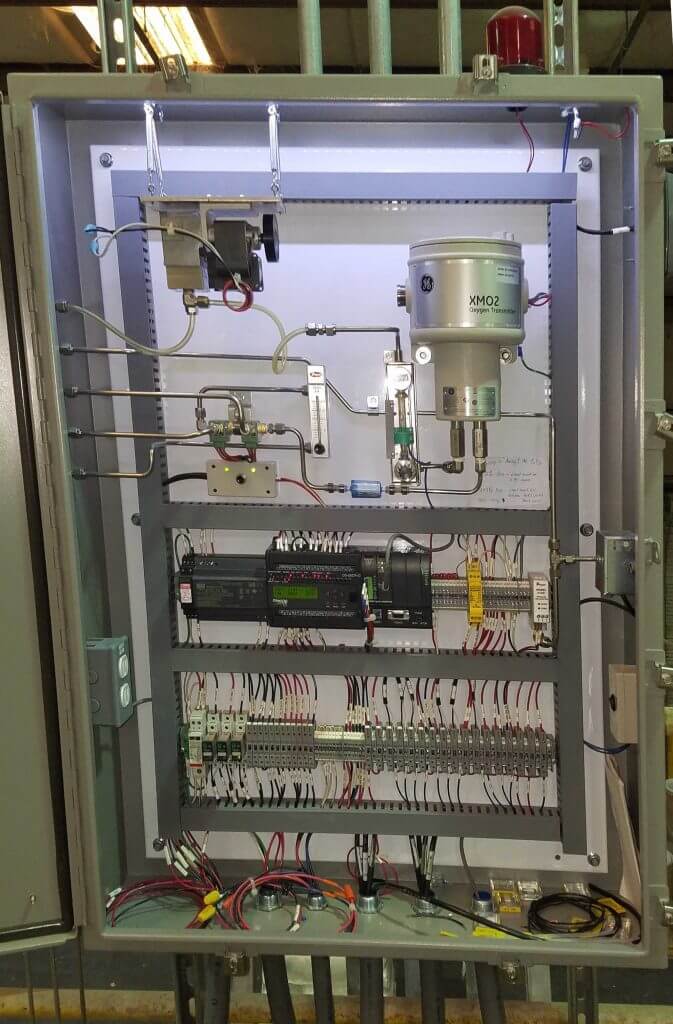 As GSI technicians calibrated instruments and maintained devices at their clients, they observed the problems with manual inerting, and initially created some basic hardwired interlocks to help the operators. Positive results soon led GSI to develop a more comprehensive programmable logic controller (PLC) and human-machine interface (HMI) system to automatically inert the vessel and monitor the status.