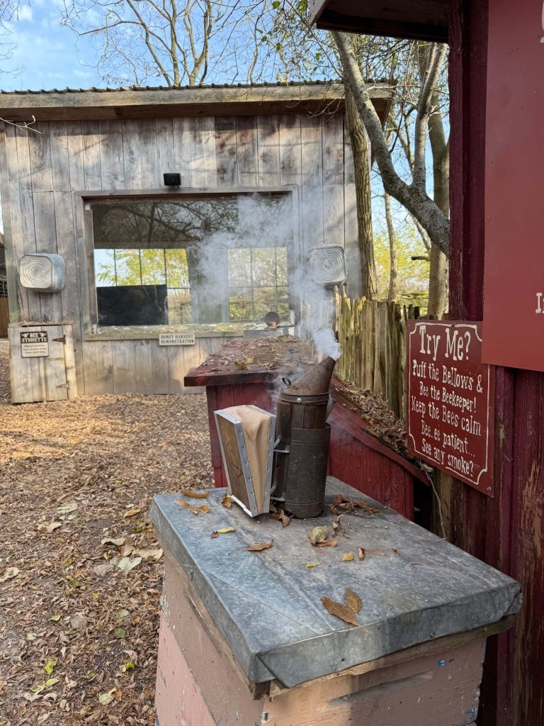 In another activity, guests operate a bellows to create smoke—generated by a fog machine—similar to what beekeepers use to keep the bees calm (Figure 4). Behind the scenes, a CLICK PLUS PLC monitors the bellows movement and triggers operation of a commercial fog machine. The PLC even controls a stepper motor damper valve which helps to create the realistic puffs of smoke. The PLC also commands a pump as needed to refill a small local day tank from a larger remote supply tank. An AutomationDirect float switch monitors the tank level, so the PLC can email a message to the farm staff when more of the fog-making solution is needed, or send an alarm if the pump runs unexpectedly long which indicates a failure.