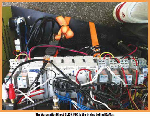 The key to all this movement is five motors controlled via an AutomationDirect CLICK PLC, which enables DaMan to be operated in any one of three operational modes: