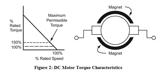 There are several reasons to choose DC motors over AC motors. High performance (especially at low speeds), high power density, simplicity of control, and a large installed base help determine applications for DC motors. DC motors develop full-load torque at low speeds (Fig. 2). This, combined with low inertias, result in excellent performance from DC motors. AC motors and controls have closed the performance gap, but general purpose DC motors still outperform general purpose AC motors. To obtain comparable low-speed performance from an AC motor, much more expensive AC drives and motors must be used (see DURApulse drives and BlackMax motors).