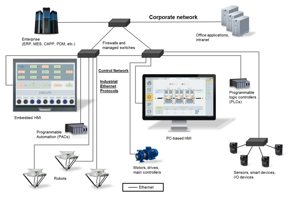 The rise of Ethernet in industrial automation was fueled by the IEEE 802 local area network (LAN) standards, created back in the 80’s and continuously revised since then. Many current networks were designed using the Purdue computer integrated manufacturing model of control hierarchy that rigidly defined the levels in a factory from the plant floor to enterprise level systems.