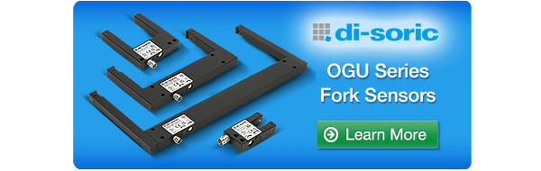 The new di-soric OGU series fork sensors are UL Listed, CE and UKCA marked, and RoHS compliant. They offer a 1-year warranty and start at $141.00.