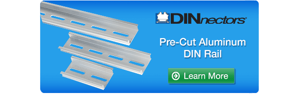 Pre-cut DINnector steel DIN rails start at $6.00 / 4pk.(DN-R35S-050-4).