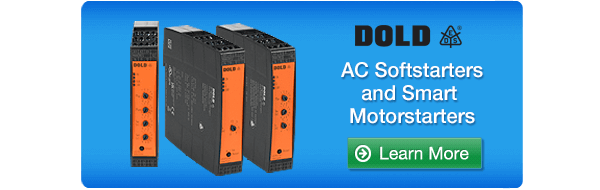 November 19th, 2025-AutomationDirect now offers Dold 9019 soft starters which offer simple dial setup for standard and light-duty three-phase applications under 9 amps and support a voltage range of 200-480VAC. These soft starters are in an ultra-compact, space-saving package with many great options, including a soft stop feature. Like most other solid-state soft starters, they provide thyristor control of two motor phases until the motor is up to speed, then bypass the starting circuit with contacts. Galvanic protection between the control and power circuit is standard.