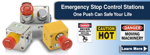 The emergency stop pushbutton is a very simple way to quickly and completely freeze machine operation to prevent injury to an operator or costly damage to the machine. If the machine becomes dangerously unstable or the machine operator finds him/herself in danger, a simple push of the Emergency Stop pushbutton stops the danger. Keep in mind that some machines are simple and safe enough or have enough moving parts that a simple shield can provide the safety required. However, machines that can pose danger to operators most times require a more thorough safety system to ensure protection of human lives and equipment.