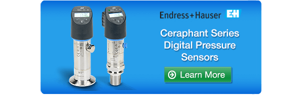 The new Endress+Hauser Ceraphant series digital pressure transmitters are CSA approved, CE marked, and have a high IP67 environmental protection rating. They offer a 1-year warranty and start at $485.00.