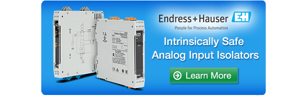 The new Endress+Hauser intrinsically safe analog input isolators are UL Listed, CSA approved, CE marked, and RoHS compliant. They offer a 1-year warranty and start at $231.00 (RN22-CB1A-LT).