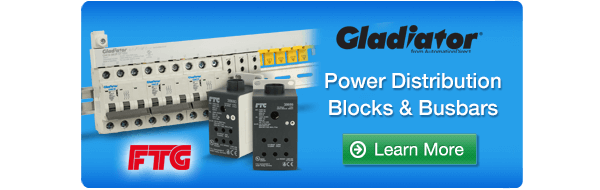 The FTG enclosed-style power distribution and terminal blocks are CE marked, RoHS compliant, and offer a 2-year warranty. The power distribution blocks are UL listed and start at $19.00; the terminal blocks are UL recognized and start at $14.00. The new Gladiator busbars start at $20.50.