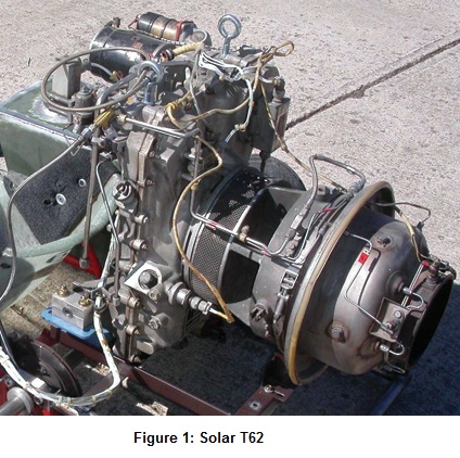 The Solar T62T-32A gas turbine engine was originally installed in a military generator set which included appropriate controls to start up and run the engine to provide desired electrical power.