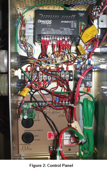 A view of the control panel with the DL05 PLC, signal conditioning modules, and fuel governor can be seen in Figure 2.