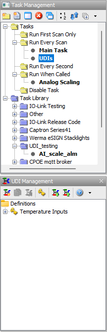 With UDI capability, developers can encapsulate the PLC logic in an organized manner. Continuing with our temperature example, the PLC logic could include provisions for mathematically scaling the value, monitoring module errors, and comparing the temperature with high/low alarm thresholds to generate alarm bits (Figure 2).