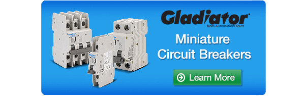 Starting at $13.00, AutomationDirect Gladiator GMCBU series miniature circuit breakers are UL, CSA and CE listed and have a 2-year warranty. GMCB series supplementary protectors are priced from $7.00.