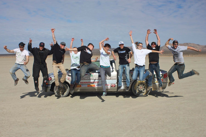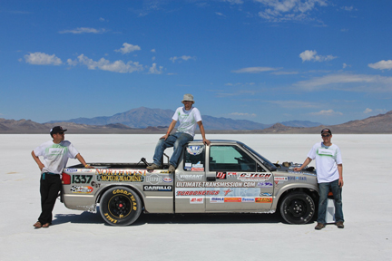As a full-time student, Dave could no longer afford the racing toys he was used to, but the concept of an officially-sanctioned student club at Boise State offered the means to raise both interest among his fellow students and the sponsorships and donations required to fund the endeavor. In 2010 the group achieved official “student club” status, and in 2011, their third year, things began to happen fast: In March, the students, with the help of a generous donor, bought a 1998 Chevy S-10. In late May, some shop space was donated, and by August they had completed their first high-speed run. In less than three months, the club had raised enough donations (in cash & parts) had completed the overhaul and construction of the truck from the ground up, and made it to the salt flats for a pair of high speed runs!