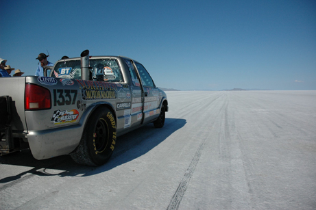 With just two and a half months to build their entry, the students transported the almost completed truck six hours from Boise to the Mecca of high speed, the Bonneville Salt Flats for Speed Week 2011. Once they arrived, they completed the build on the salt. They had to overcome several last minute issues but finally passed the technical and safety inspections the last night of the event, and made it to the start 50 minutes before the event ended where they completed the last two runs of the event (for any competitors) – but were unable to post any times or records. Everyone they met at Bonneville offered their encouragement; most were in disbelief of what the team had accomplished in the short time frame. The team returned to Boise, started fall classes the next day, and started preparing for the next event.
