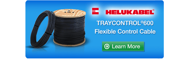 The new Helukabel TRAYCONTROL cable is cut to length in 1-foot increments with a 20 ft. minimum, starting at $0.51 /ft.