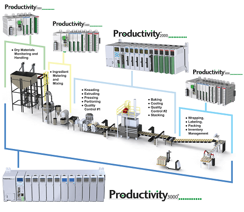 Some controller families, such as the Productivity Series PLCs, offer several different size options, each using the same programming software. The single programming environment provides application flexibility while saving time and money because programs can easily be converted or moved from one PLC to another.
