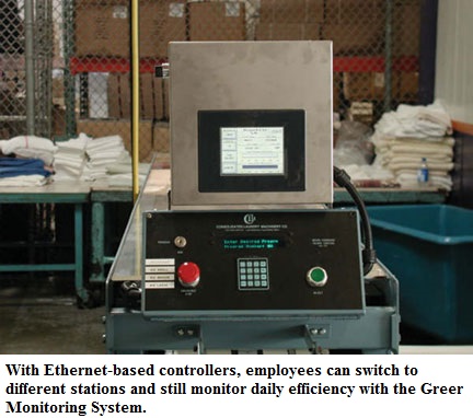 Over the last three years, the Greer Monitoring System (GMS) has been used in textile rental plants in California to monitor employee efficiency and productivity. Using AutomationDirect’s touch panels, Terminator IO, DirectLOGIC 205 Ethernet-based controllers, and Think & Do Studio PC-based control software, the Greer Monitoring System provides real time feedback of each employee’s efficiency on a daily basis. “At the end of the day you want them to know how they did that day. You don’t want them to wait until the end of the week to get an efficiency report,” says Greer, “They know how they are doing now.”