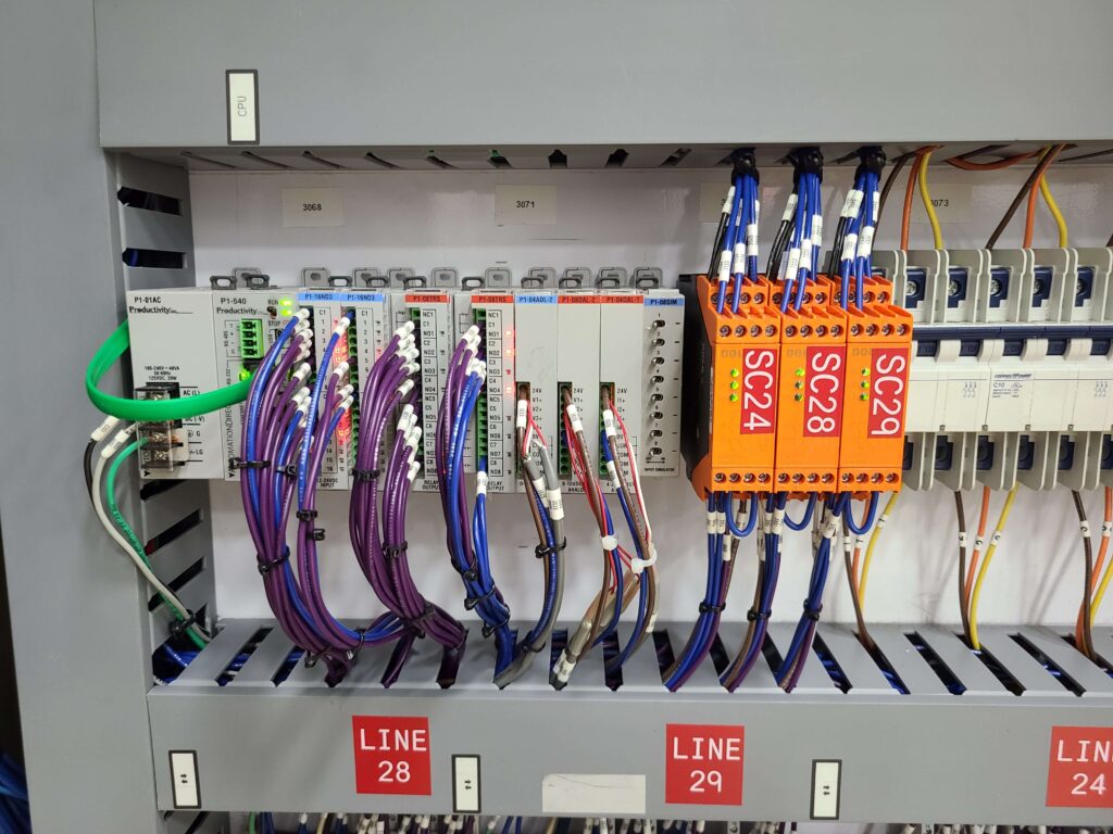 The team generally standardized on Productivity1000 stackable micro PLCs, combined with C-more HMIs, both of which are compact and easily retrofitted into existing cabinets.