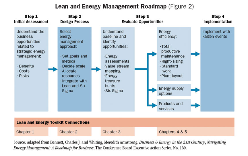 These changes can be brought about with the use of tactical tools such as Lean Management, often using Six Sigma. With Lean/Six Sigma, the target is waste, which ultimately sets energy use in its sights.
