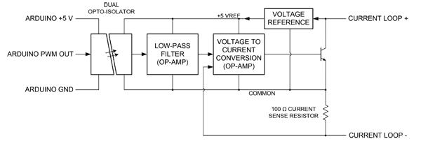 As Doug points out, the notion of converting 4-20 mA to 0-5 V and the reverse is fairly common, so the input end of the process is pretty easy for the Arduino, but the output end is much harder. The Arduino’s output is PWM, but there aren’t many industrial actuators able to use this kind of signal, and the required conversion is much more challenging, but Doug figured out how to do it.